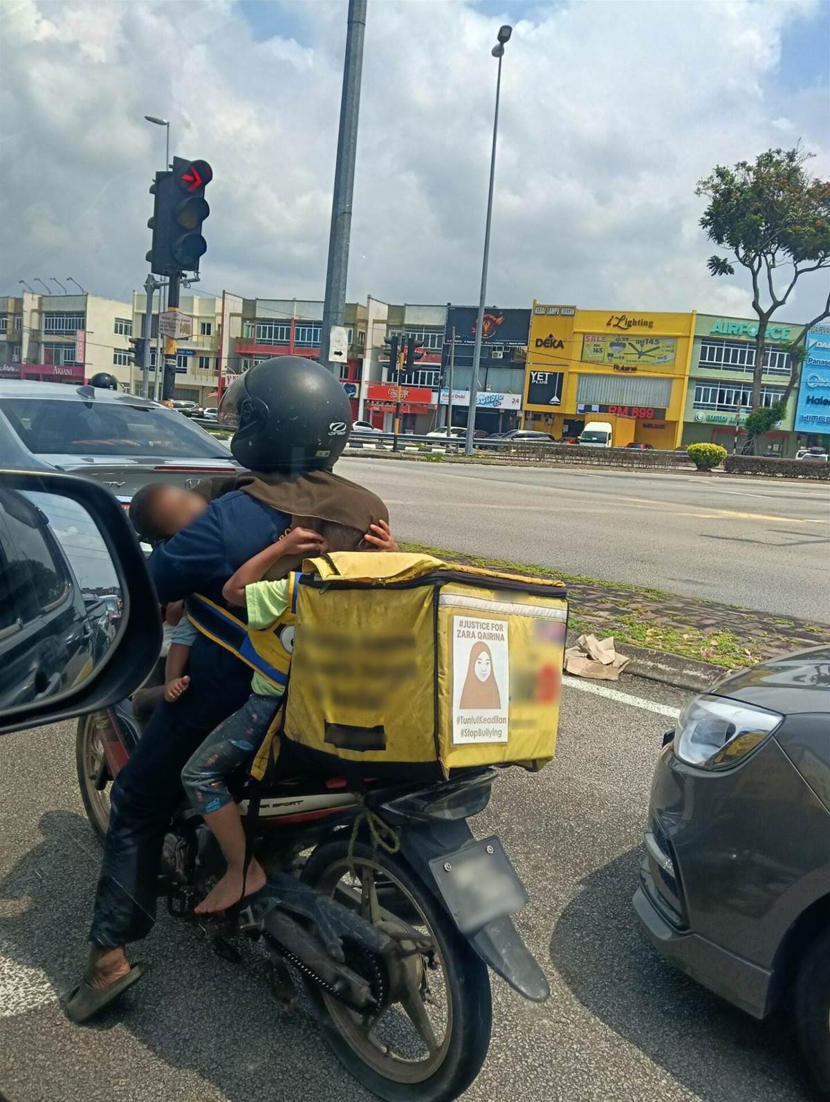 大马马六甲一名女子为了补贴丈夫微薄的收入,及满足孩子的日常需求,不惜骑摩托车载着3名年幼的孩子去送餐,只为赚取一天约RM30的收入。