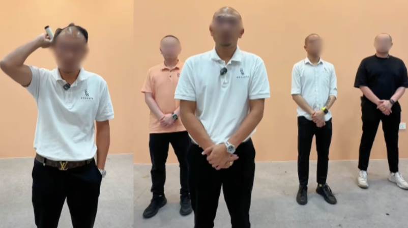 发廊老板带领三名发型师一起剃头表示歉意。