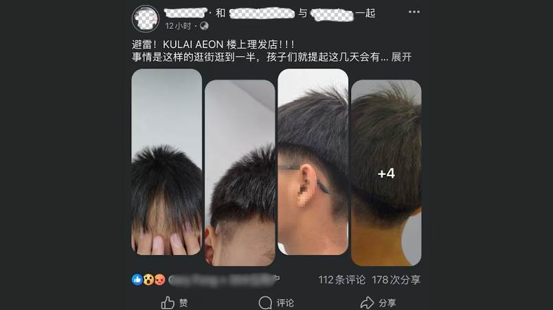 马来西亚柔佛一名母亲在社媒发文控诉,发型师将儿子的发型剪坏,令儿子心情低落,提醒网民避开有关发廊。发廊老板知悉后发文道歉,后来还和三名发型师一起剃头表示歉意。