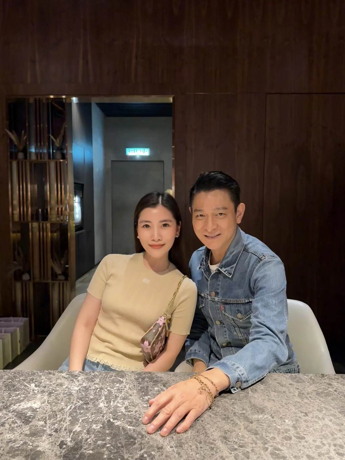 5月9日,刘德华陪老婆朱丽倩回马来西亚探亲,朱丽倩的表妹陈雪铃邀请他们夫妻到米其林餐厅吃高级料理。