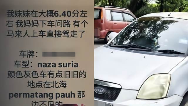 根据帖文,妇女当时开车载着九岁女儿,准备返回槟岛的住所。因不熟悉路线,妇女下车向路人问路,不料一名男子,趁机闯入车内驾车离开,当时女童还在车里。