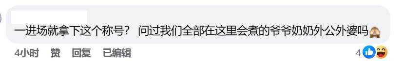 “一进场就拿下这个称号? 问过我们全部在这里会煮的爷爷奶奶外公外婆吗?”