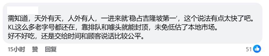 KL 这么多老字号都还在,靠排队和噱头就能封顶,未免低估了本地市场。好不好吃,还是交给时间和顾客说话比较公平。”