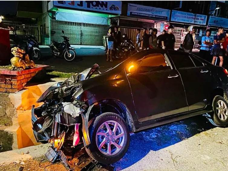 森美兰州芙蓉今天凌晨发生一起死亡车祸事故,一辆轿车司机疑似酒驾失控闯入反方向道与摩哆迎面相撞,导致警员骑士重伤送院不治!