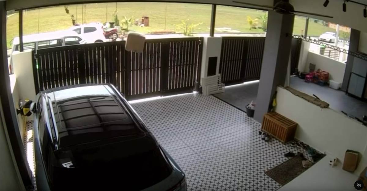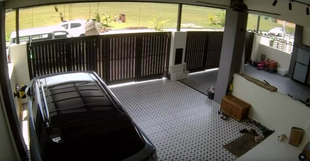 该网友还附上一段闭路电视拍摄视频,视频可见,送货员疑是按门铃不获回应后,从房子大门外将一个正方形包裹抛入车房内。