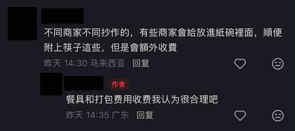 该网友也回应道,“餐具和打包费用收费,我认为很合理吧。”