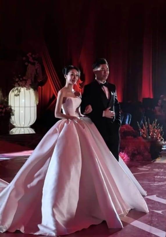 这场婚礼融合中式传统与现代美学,在吉隆坡盛大举行,宾客云集、星光熠熠。新娘陈铭君出身华人名门,自小往返香港与海外,气质优雅大方,当天更换上多套高级定制礼服,成为全场焦点。