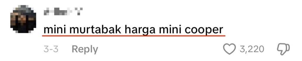 他补充道,自己是在 Bangi 附近购买的,当时摊位没有标明价格,也没有说明是「迷你版」Murtabak。