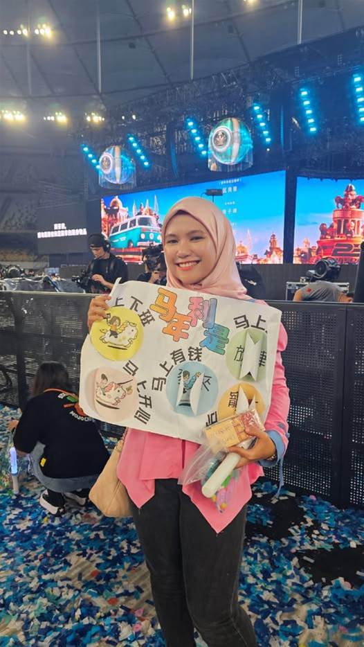 (综合讯)马来西亚TV2华语新闻巫裔女主播拉丝达(Rasyidah)是天团五月天的超级粉丝,她1月31日朝圣五月天5525“回到那一天”巡回演唱会吉隆坡站。在粉丝点唱环节,她幸运被阿信点上,激动得当场跟阿信告白,直呼“这跟谈了(恋爱)有什么分别”!
