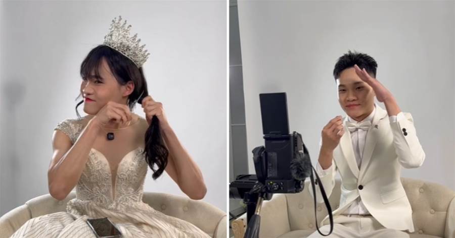 白蒽记录下了他剪掉长发、卸去浓妆,以及换上男装的过程。
