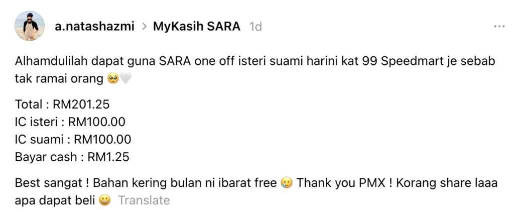 RM100 也许不多,但在物价高的现在,这笔钱真的帮上了忙。不只是买了日用品,更让人感觉到被关怀和温暖。