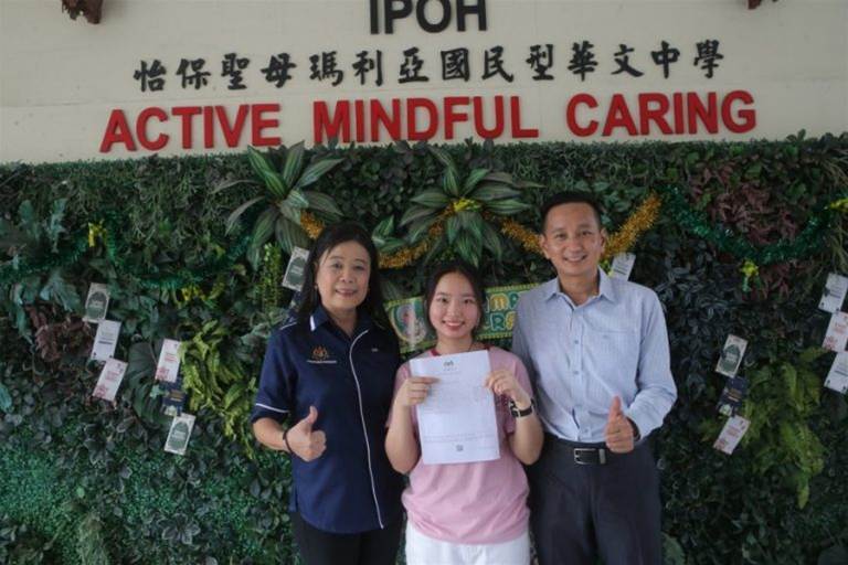 怡保圣母玛利亚国民型华文中学(圣母华中)考生叶喻文,在2025年大马教育文凭(SPM)考试中,克服母亲离世的巨大打击,考获10A(5A+、1A-、4A)的优异成绩。