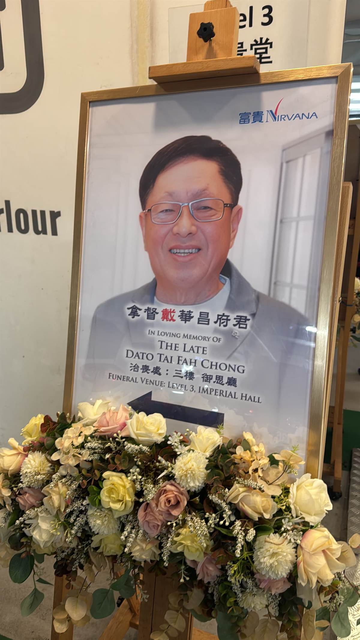 拿督戴华华昌即日起至7日在富贵生命馆设灵,供亲友前往弔唁,太太凯儿也一早在灵堂打点。
