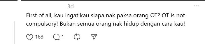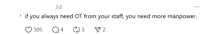 这名相信是雇主的男子通过Threads发文,分享了Z世代年轻员工潇洒的工作态度。他表示,尽管已经告知员工将会支付全额的加班费,但对方还是拒绝了加班,并强调自己只想要准时下班。这名雇主无奈表示,当老板因人手不足要求员工加班时,竟被他们以“想准时下班”为由拒绝。