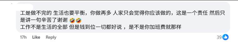 本地一名男子通过社交平台发文,表示现在的年轻人只想准时下班,不想加班。他回想起以前,当老板要求他们做什么时,他们只会照做,因此对年轻一代的员工的工作态度感到惊讶。