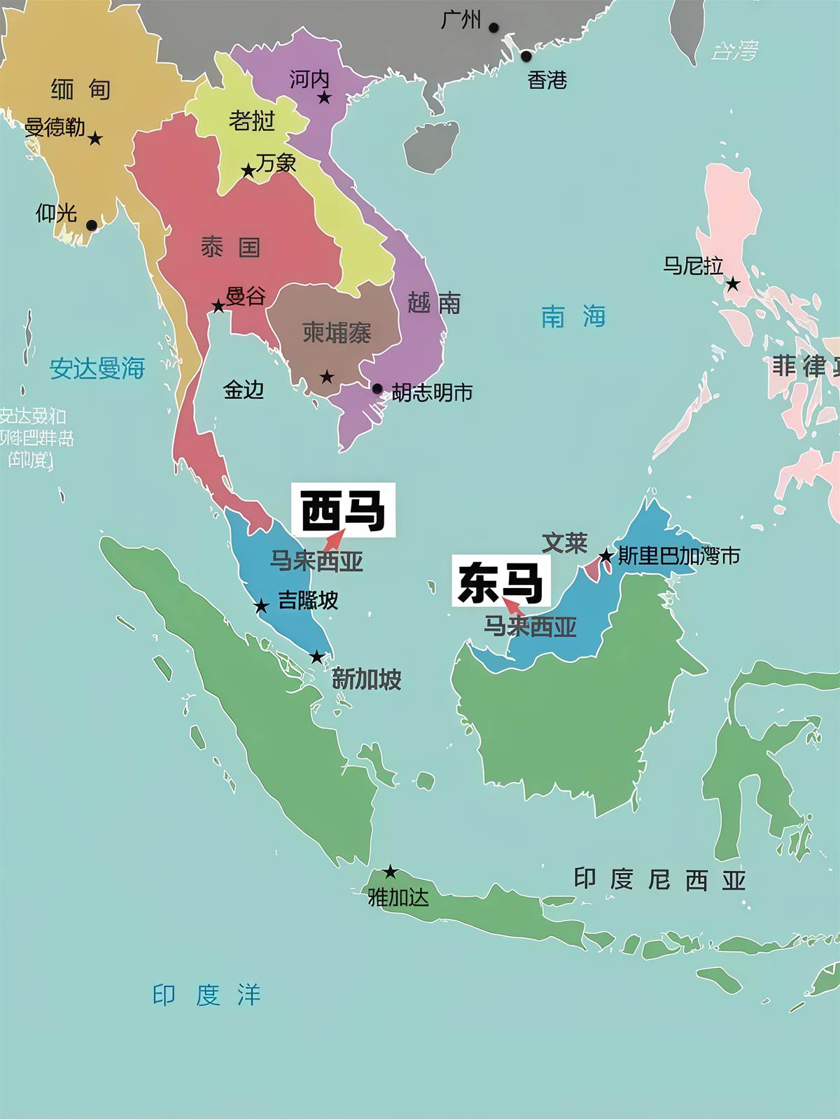 马来西亚面积约33万平方公里,国土被分为东西两块:西马和东马,两地相隔600多公里。 西马面积约占全国的40%,却居住着超过80%的人口,是国家的重心。而面积更大的东马人口稀少。
