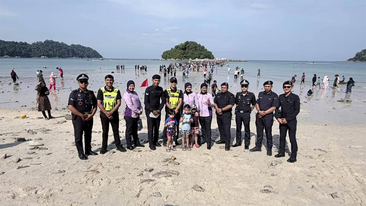 曼绒市议会与警方、消拯局、民防部队及渔业局合作,确保游客安全穿越沙洲。(图取自警方面子书)