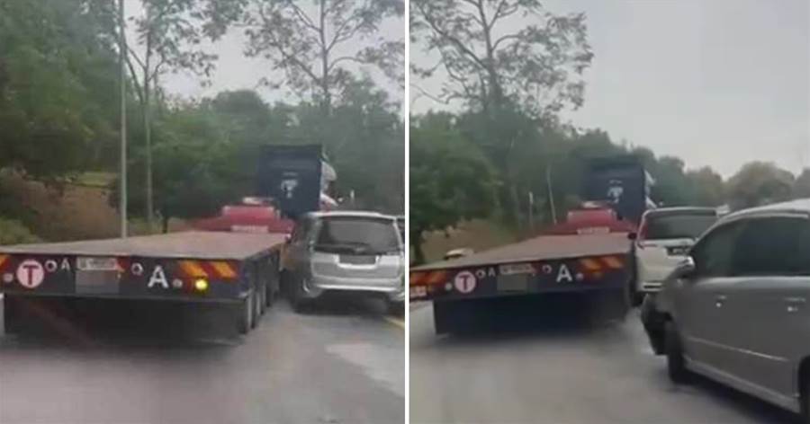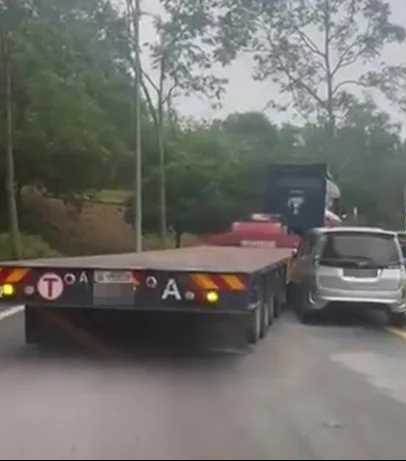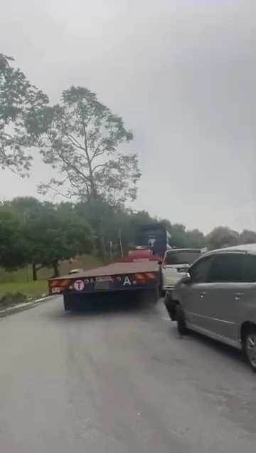 因违法停在休息站附近的一个转弯处,3辆车子直接被一辆经过的拖格罗里碰撞!