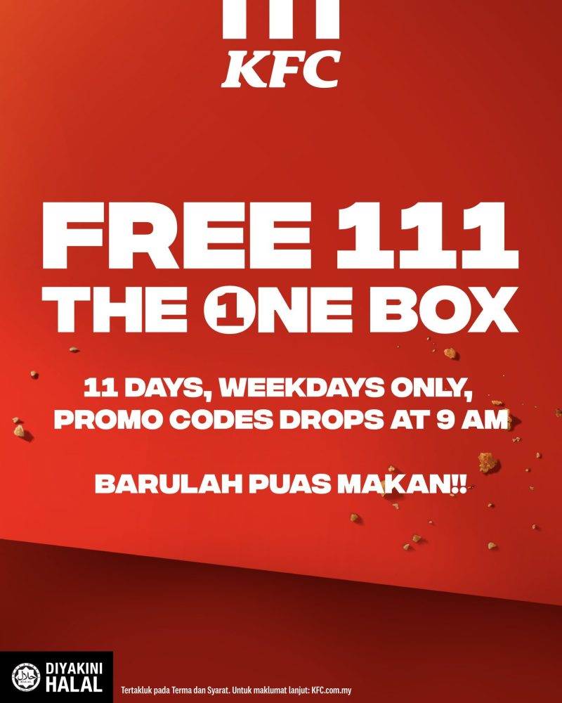 根据活动安排,KFC将在每个工作日早上9时,于其马来西亚官方脸书专页发布限量促销码,供顾客领取。不过每日名额仅111份,数量有限,先到先得。
