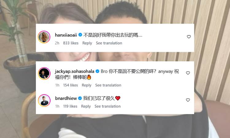 贴文曝光后,圈内好友纷纷调侃留言,包括 Dennis 林铭、韩晓嗳、陈栩琴(Gladish)、赖铭权、卡卡等。