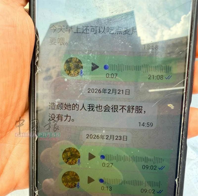 根据死者与该小贩的讯息对话内容,男死者于2月21日最后一次发讯息给小贩,曾提及他喂妈妈吃麦片,一直照顾妈妈,他本身也感到不舒服,身体没力。