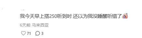“我今天早上搭250听到时,还以为我没睡醒听错了。”