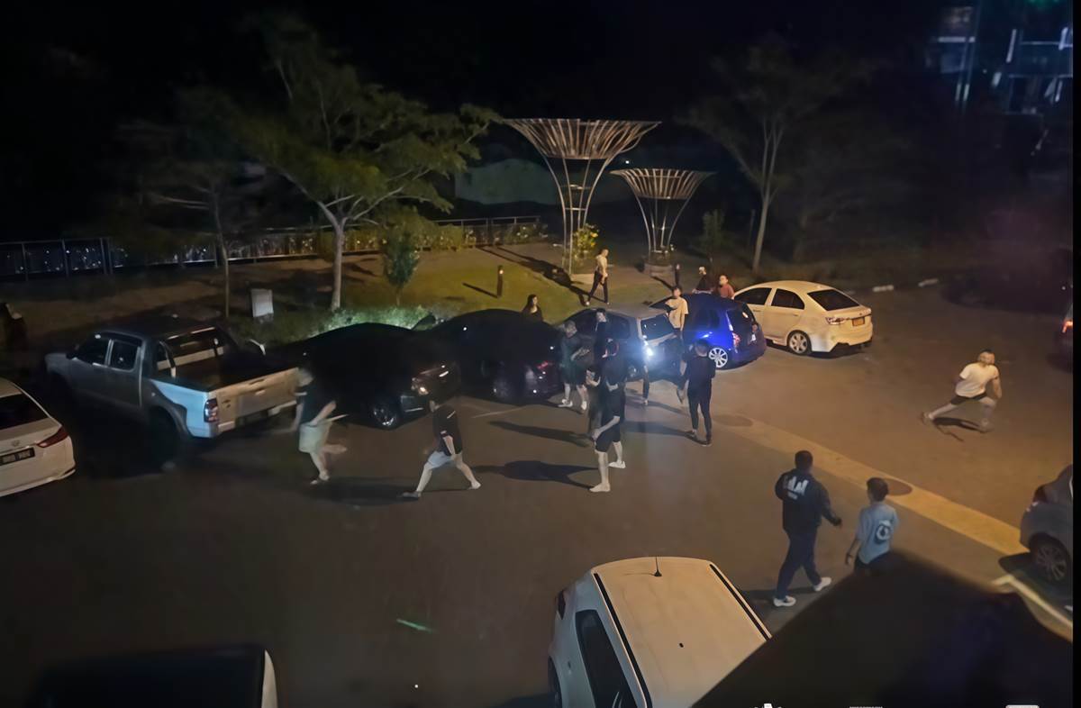 凌晨两点的砂拉越美里海滨,本该是市民吃宵夜闲逛的热闹地,却突然变成了持械斗殴的战场。一段一分钟的视频在网上刷爆,画面里一群年轻人拿着铁棍、砍刀和木棒互相追打,尖叫声盖过了夜市的喧嚣,路过的食客吓得四处躲闪,有路人没来得及跑开还被波及。