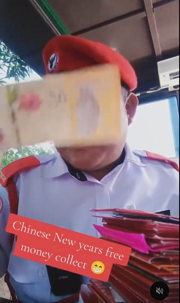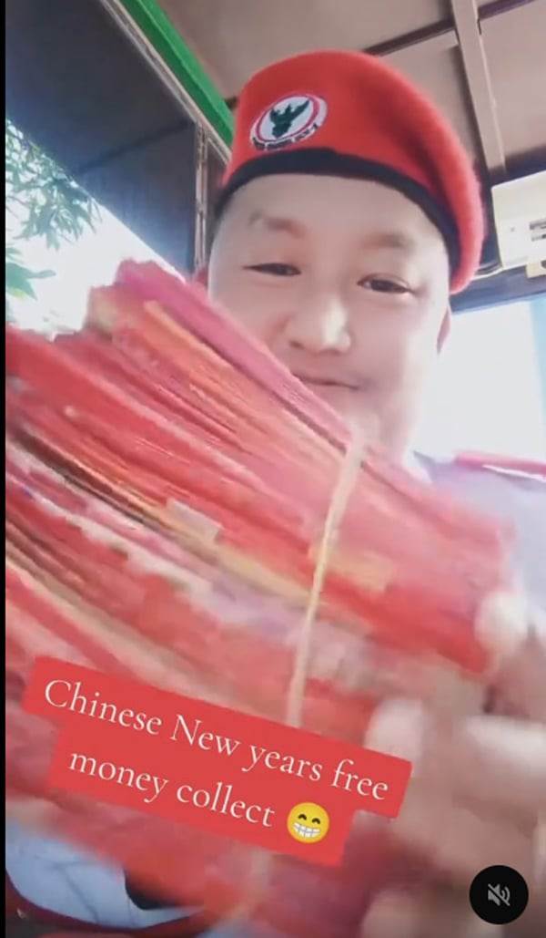 (吉隆坡26日讯)一名住宅区保安员者在农历新年期间,收到许多慷慨居民给予的红包,有者甚至派100令吉,令他笑逐颜开。