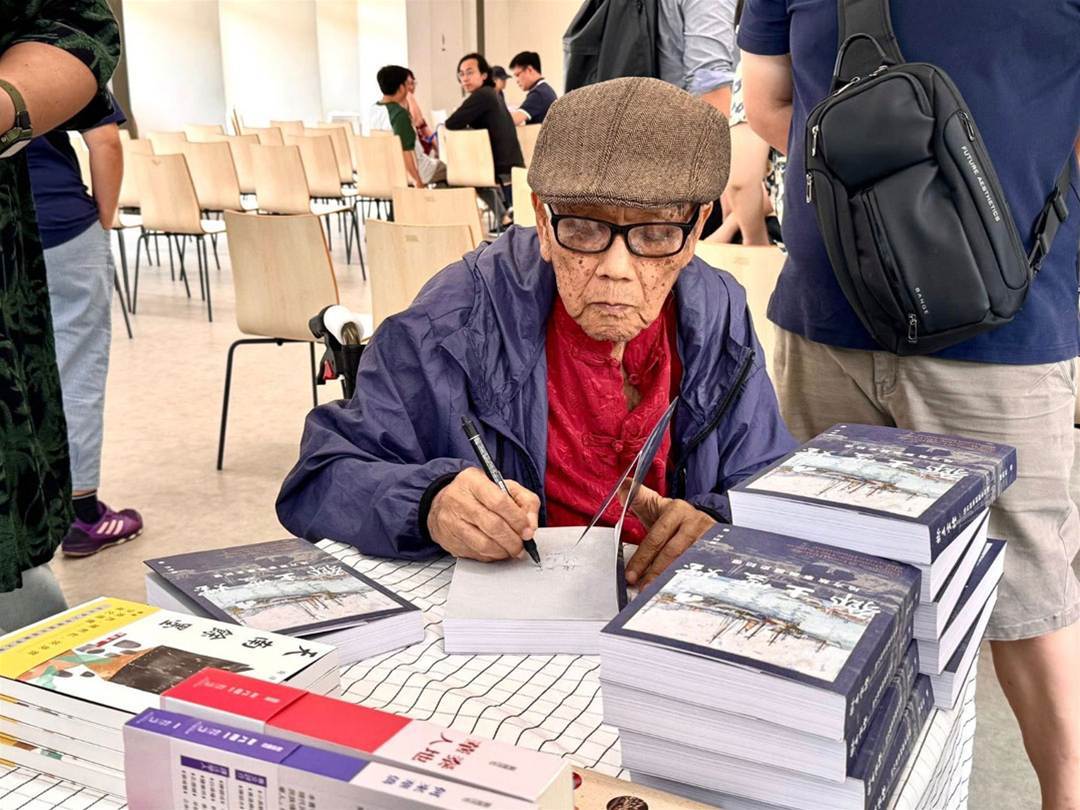 尽管年事已高,陈剑虹(中)仍笔耕不辍。他去年11月间才推出晚年重要着作《乡土云烟:地方故事与历史记忆》,系统汇集其多年研究成果。(取自岛读Book Island脸书)