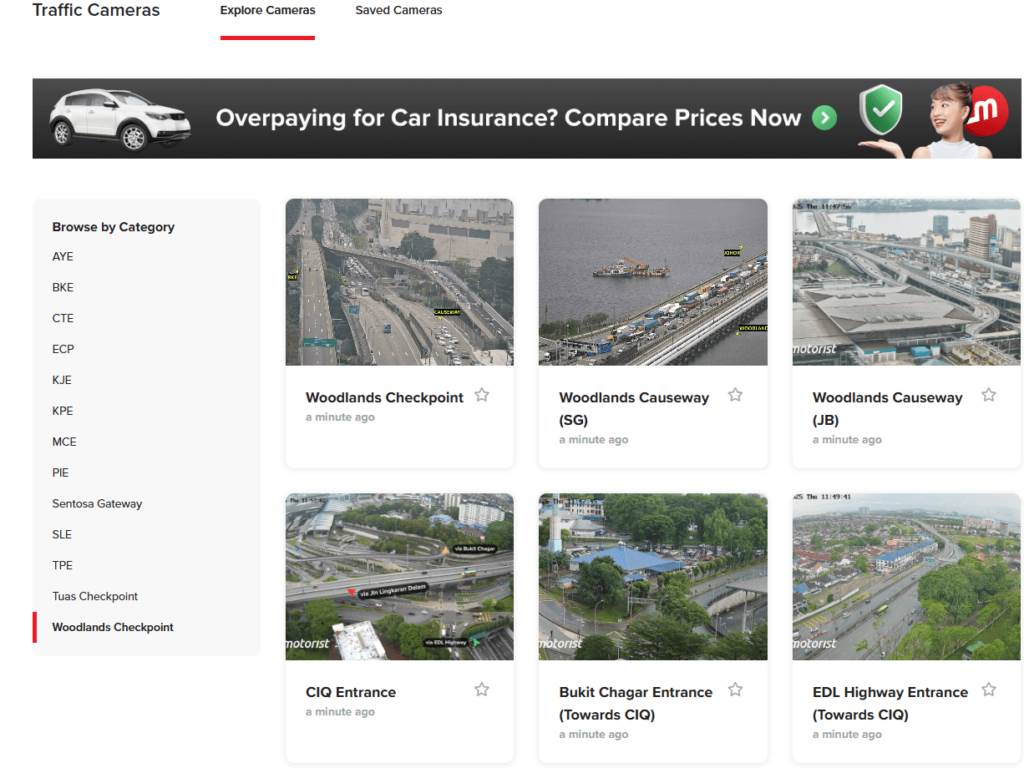 Motorist 网站可查看兀兰等多地交通,大士关卡页面较简单,还有 “保存的相机” 功能,注册免费账户能存常用相机视图,方便常去新山的人。
