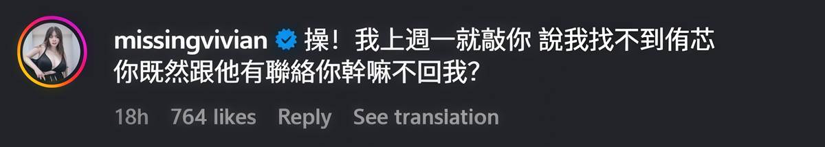 针对谢侑芯数日未回讯息,谢薇安感到不安,27日谢薇安甚至在直播中请马来西亚粉丝协寻,但一直没有回应,她当天也急着私讯黄明志,却遭未读未回。据悉,这次赴马来西亚,谢侑芯仅向经纪人Chris报告要拍摄黄明志执导的广告,称20日出发、24日返台。