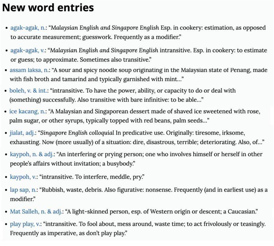 多个马来西亚与新加坡常用词汇,近日正式被收录进Oxford English Dictionary(《牛津英语词典》),再次凸显本区域语言文化对全球英语的影响力。