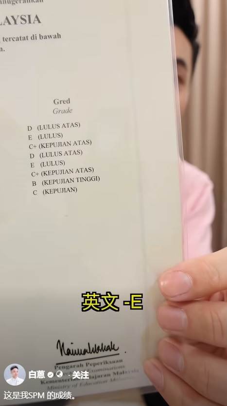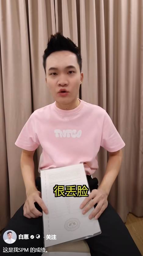 随着 2025 年大马教育文凭(SPM)成绩放榜,大马网红白蒽也晒出了自己的 SPM 成绩文凭,大方公开了自己的成绩。