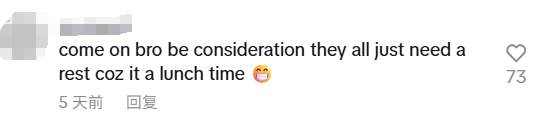 不少人心疼表示:“现在是午餐时间,兄弟,让他们安安静静吃个饭、歇一会儿不行吗?”