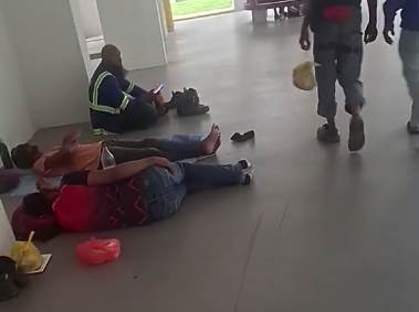 面对一连串质问,客工们只是默默坐在地上,低头不语。镜头捕捉到他们脸上写满的无措与委屈——那是一种无端被羞辱后的沉默。