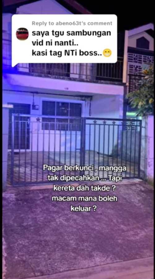 一名大马女子日前通过TikTok上传影片,表示自己最近去检查一间自己没住的房子时,发现邻居竟然打开篱笆,把车子停进去。为了反击,这名女子直接将大门锁上,不过后续的影片可见车子已经离开。