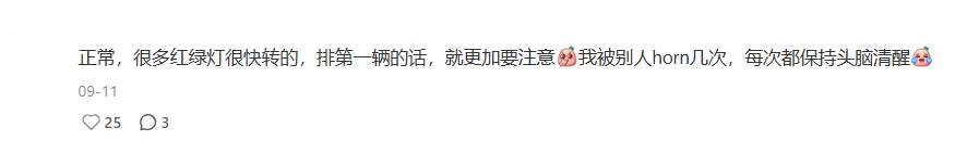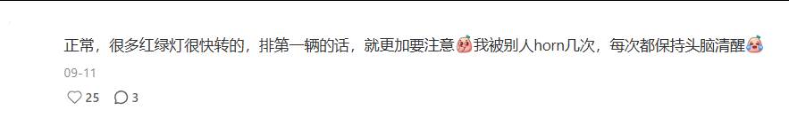 “正常,很多红绿灯很快转的,排第一辆的话,就更加要注意。”