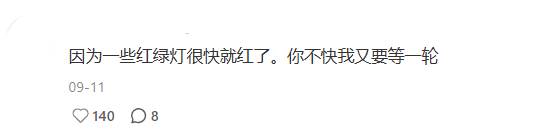 “因为一些红绿灯很快就红了,你不快我又要等一轮。”