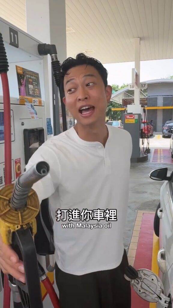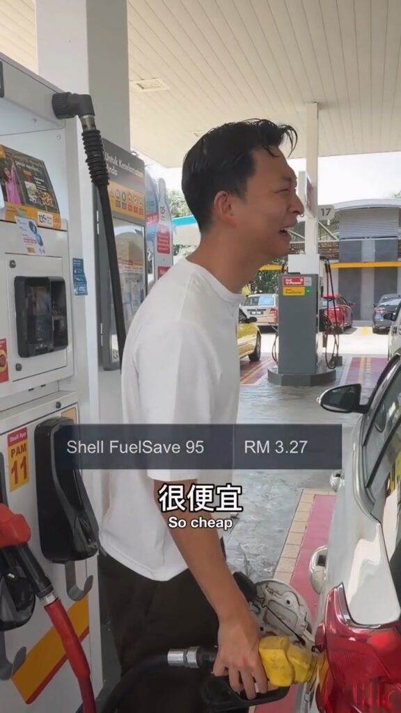 而“托哥”在视频里,一边添油一边大喊:“sangat murah!好平啊(很便宜啊)”!后来,“托哥”甚至还激动转头对后方的人喊话,“uncle 我请你打(油)”。另外,他也在贴文底下写到,“马来西亚的油… With government subsidy, Malaysians are currently paying 1.99 ringgit (0.5usd) per L”。