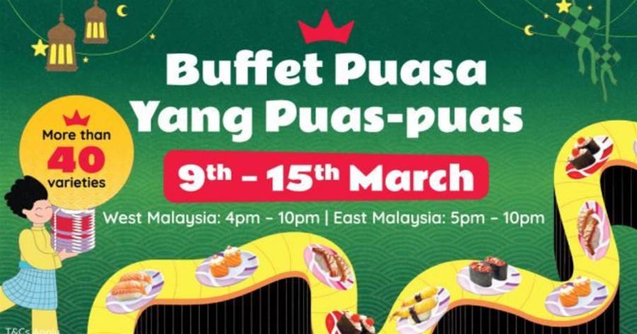 这项名为 “Buffet Puasa Yang Puas-puas” 的活动,为食客带来极具吸引力的无限量寿司体验。在活动期间,顾客可从传送带上享用超过40种新鲜制作的寿司。除了无限寿司外,每位付费顾客还可获得额外免费配套美食,让开斋用餐体验更加丰富。