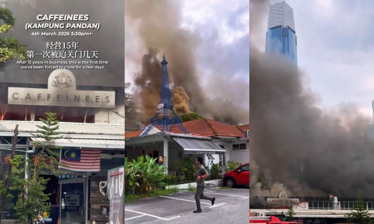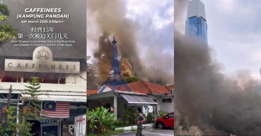 OMG!本地知名餐厅 Caffeinees 发生火灾!位于 Kampung Pandan 的 Caffeinees,是 KL 着名的本地喝茶圣地,昨日(3 月 4 日)傍晚约 5.30PM 发生火患,火势一度蔓延至屋顶,仅 15 分钟就烧尽!