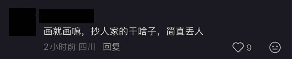 也有中国网友现身评论区,“画就画嘛,抄人家的干啥子,简直丢人。”