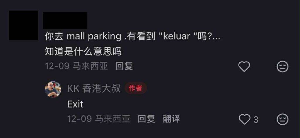 “你去 Mall Parking,又看到‘Keluar’吗?知道是上面意思吗?”