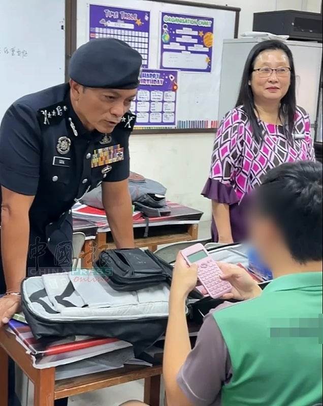 根据《中国报》报道,甲州总警长拿督祖凯里慕达亲自率队,于2025年10月23日早上7点15分到Bukit Baru一所中学突击检查,在防范罪案及社区安全主任阿妮莎助理总监等人陪同下,发现数名学生书包内藏有扑克牌、手机等违禁品。