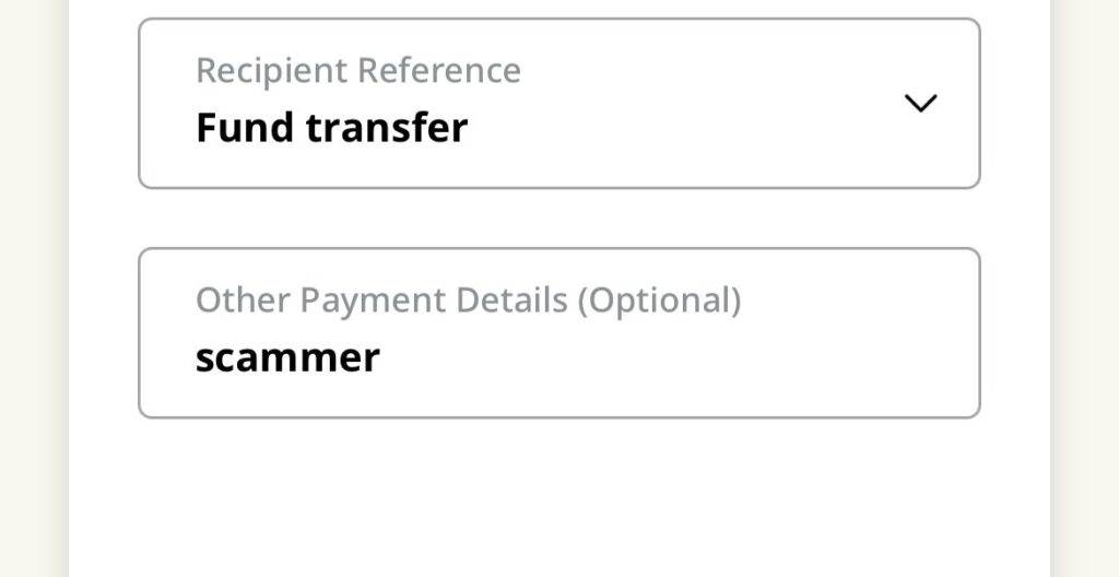 在了解情况后,女子决定用一招来反击诈骗犯。她分20次、每次1仙的小额款项通过银行转账给骗子,并在支付详情中写上“Scammer”(骗子)。