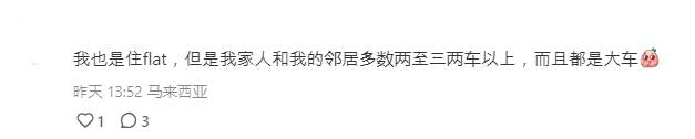 “我也是住Flat,但是我家人和我邻居多数两三辆车以上,而且都是大车。”