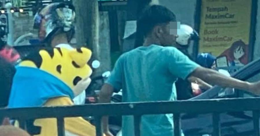 (新山23日讯)一对男女将孩子装扮成青蛙玩偶,在路上向民众讨钱,若孩子不配合,甚至会掌掴孩子,网民纷纷要求目击者报警。