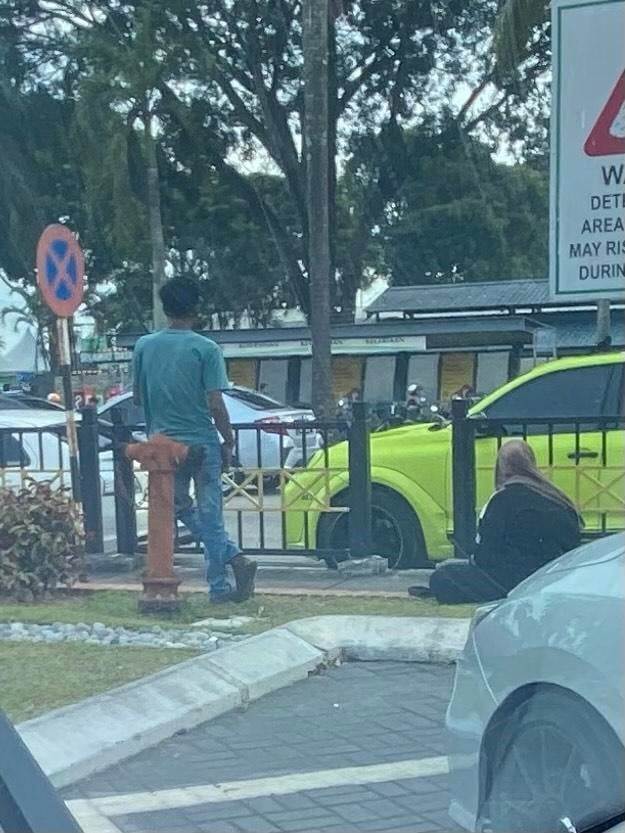 根据社交平台Threads上广传的照片,一名男子站在路旁,同时也有一名女子坐在地面上。