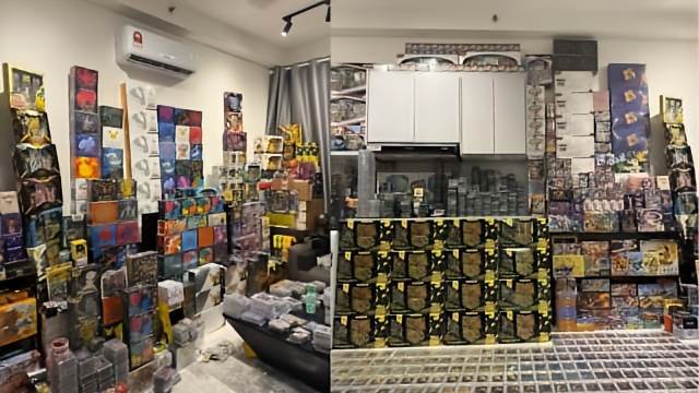 照片显示,他的房间堆满整箱色彩缤纷的宝可梦卡牌,几乎堆到天花板,展现出他多年来的收藏成果。