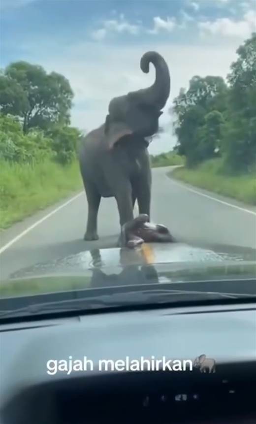 (吉隆坡22日讯)一头野生大象在公路中分娩的的影片迅速在网络上疯传,画面罕见且感人。